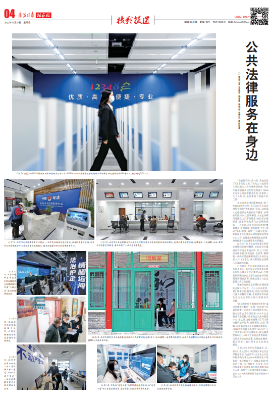“群众有纠纷有困难首先想到‘通过法律途径解决’,是每一位法律工作者的骄傲。”北京市公共法律服务中心副主任常占芳告诉记者,2020年北京建成了全国最大的省级公共法律服务中心,在这里,宽敞的接待大厅可为群众提供法律咨询、法律援助、公证、调解、司法鉴定等全业务领域法律服务;12348热线为群众提供“7×24小时”人工加智能不打烊法律服务,群众满意度98%以上;400平方米宪法教育基地,为民众讲述宪法故事、弘扬宪法精神。群众只进一扇门便享公共法律全服务。