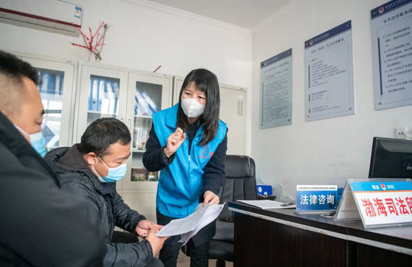 11月8日,在北京市怀柔区渤海镇司法所,村居法律顾问为村民提供法律咨询。