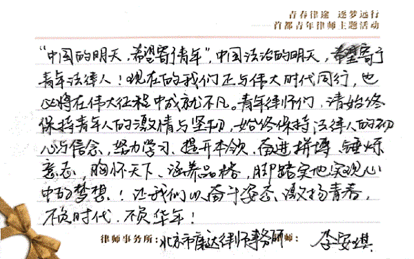 活动特别设计“寄语卡留言”环节,青年律师在现场写下对个人职业发展和律师行业的期许,抒发对法治事业的热爱。现场从中抽取5位青年律师的寄语卡,并邀请他们上台进行分享。