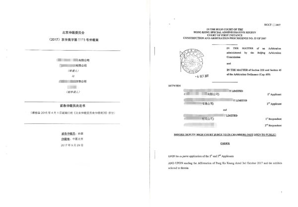 紧急仲裁员决定书及香港高等法院原讼法庭执行命令