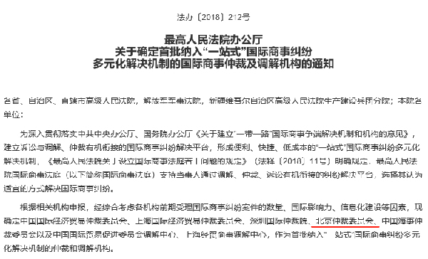 最高人民法院将北仲纳入了首批“一站式”国际商事纠纷多元化解决机制的仲裁机构