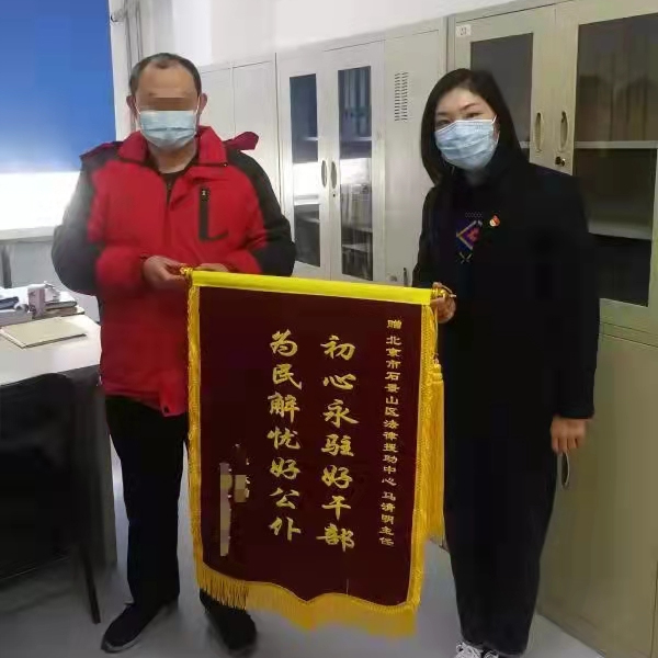 曹某对石景山区法律援助中心高效务实为民解难题的工作作风,以及马清明主任周到的服务、专业的精神表示感谢,特来中心赠送锦旗。