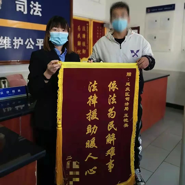 近日,刘某将一面写有“青天有鉴 司法为民”的锦旗送到法律援助工作人员李柏曌琪手中。“幸亏有法律援助律师,在我们走投无路时,伸出援助之手!”