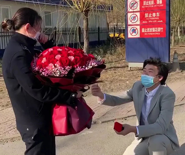 2018年入职的撖毓聪,老家是甘肃的,参加工作后遇到了她的Mr. right,经过两年的爱情长跑,终于到了谈婚论嫁的时候。按照计划,今年春节前,男友一家要和撖毓聪一起去甘肃老家定亲。两方亲戚相互认识、见证幸福的计划,却因疫情防控不得一拖再拖。无奈之下,男友一人鼓起勇气,只身前往甘肃定亲,也就是那时定下了今年3月28日的好日子。