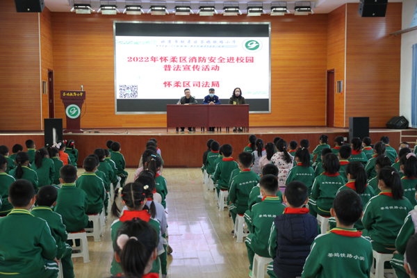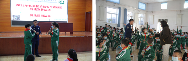 怀柔区司法局邀请区消防救援支队指导员走进茶坞铁路小学,以“大手拉小手”的形式,开展“消防安全进校园”普法宣传教育活动。