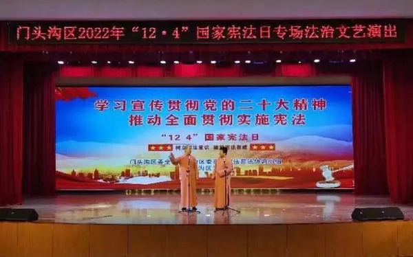 门头沟区举办2022年国家宪法日法治文艺演出,录制视频发放到各单位、镇街,宣传宪法颁布实施40周年的历程。