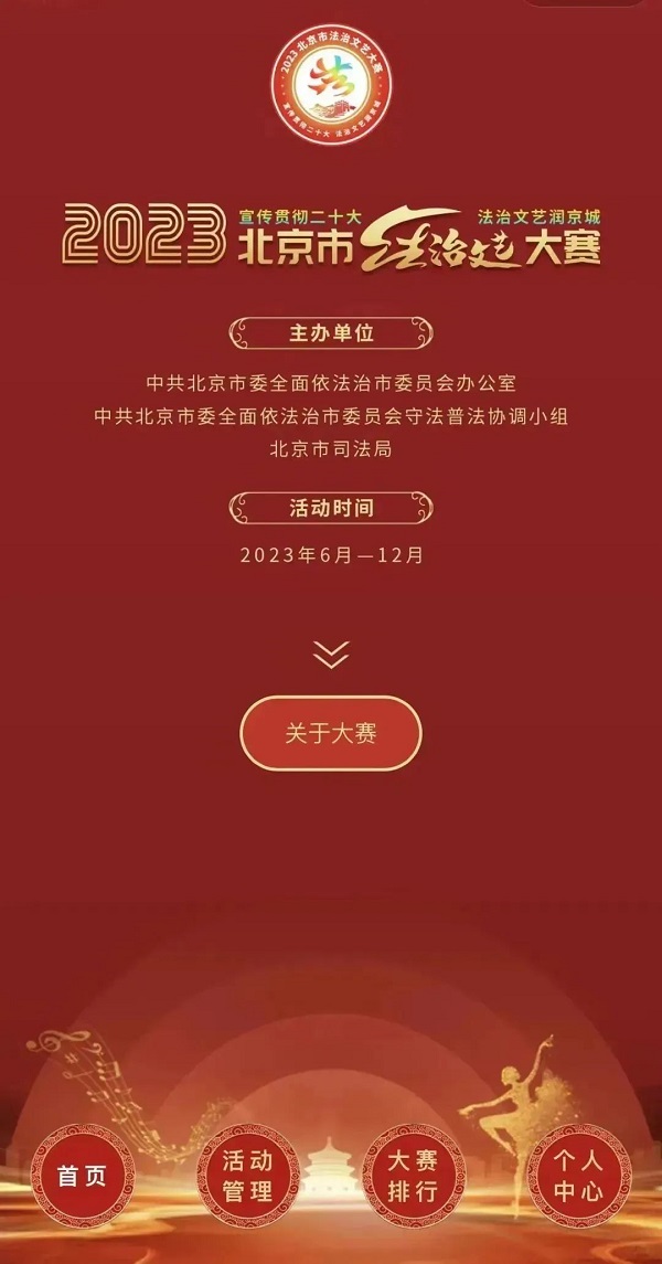 “由市委依法治市办、市守法普法协调小组和市司法局主办,以‘宣传贯彻二十大 法治文艺润京城’为主题的 2023北京市法治文艺大赛已拉开序幕......”