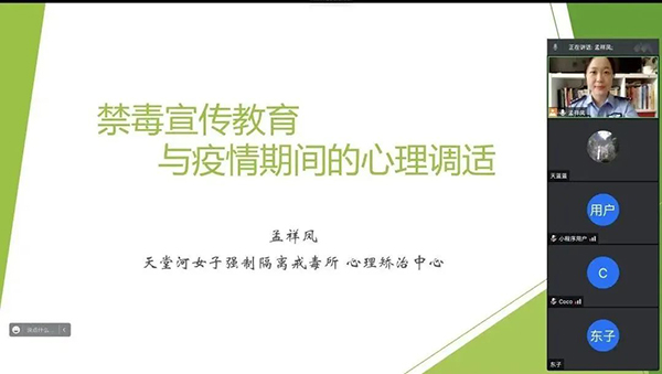 “毒品离我们很远吗?普通人能为禁毒做什么?……”天堂河女子强戒所心理矫治中心民警孟祥凤化身女主播,正在通过视频会议系统对中国电信北京公司的180余名员工开展禁毒宣传。