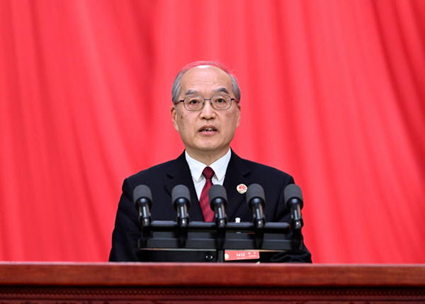 3月7日,十四届全国人大一次会议在北京人民大会堂举行第二次全体会议。最高人民法院院长周强作最高人民法院工作报告。新华社记者 李涛 摄