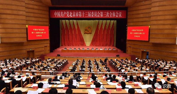 中国共产党北京市第十三届委员会第三次全体会议于6月16日召开。全会坚持以习近平新时代中国特色社会主义思想为指导,学习贯彻习近平总书记在深入推进京津冀协同发展座谈会上的重要讲话精神,审议通过《中共北京市委关于贯彻落实习近平总书记在深入推进京津冀协同发展座谈会上重要讲话精神的意见》。市委常委会主持会议。市委书记尹力讲话。市委副书记、市长殷勇就《意见(审议稿)》向全会作说明。学习贯彻习近平新时代中国特色社会主义思想主题教育中央第一指导组组长车俊、副组长李小三到会指导。