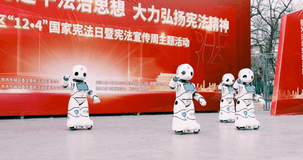 今天,在地坛公园,充满科技感的机器人舞蹈引来很多人的关注。这是东城区“12·4”国家宪法日暨宪法宣传周主题活动启动仪式现场。