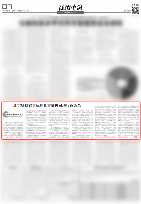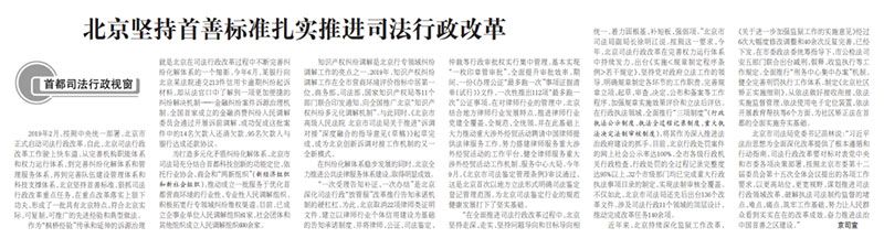今天,《法治日报》以“北京坚持首善标准扎实推进司法行政改革”为题,报道北京司法行政改革工作开展情况和成果。