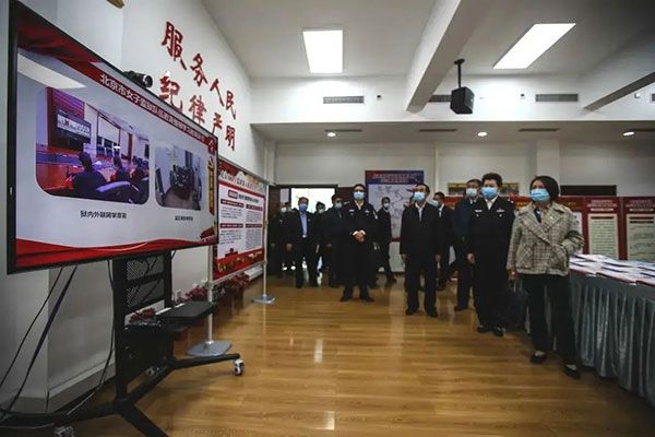 在指挥中心,女子监狱向来宾介绍监狱的基本情况,在大型监控屏幕前,现场感受女子监狱智慧监狱建设成果,并通过视频监控了解罪犯改造情况。市监狱(戒毒)局局长刘亚东在致辞中,对各位来宾的到来表示热烈的欢迎,向一直以来关心、支持和帮助首都监狱戒毒工作的社会各界表示衷心的感谢。