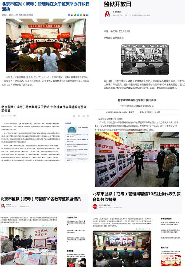 4月14日,北京市监狱(戒毒)管理局在北京市女子监狱举办开放日活动。中央第一督导组北京小组副组长孙晓卿、督导专员马继延,北京市司法局党委书记苗林,北京市委政法委政治部主任于立新,北京市委第九指导组副组长窦晓涛,市纪委驻司法局纪检组组长李京生,市司法局政治部主任谢尚河等领导及社会代表参加此次活动。