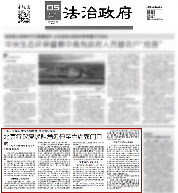 10月29日,《法治日报》以“北京行政复议触角延伸至百姓家门口——下街乡优服务重民生解疙瘩抓症结促规范 ”为题,报道了北京市行政复议体制改革取得的成效。