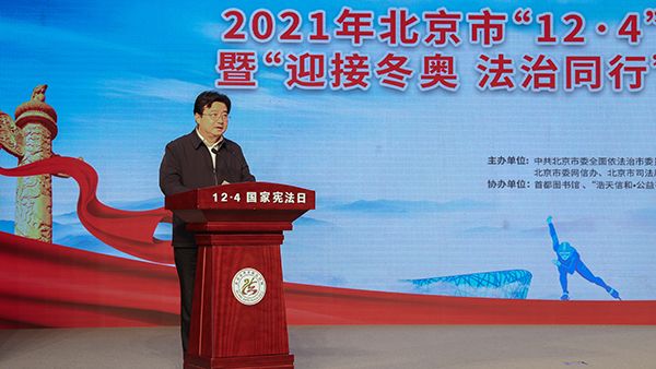 市委全面依法治市委员会守法普法协调小组副组长、市委宣传部副部长张爱军在致辞中表示,本次启动仪式是北京市深入学习宣传贯彻习近平法治思想、弘扬宪法精神、树立宪法权威的生动实践,是落实2021年全国宪法宣传周活动要求的重要举措,也是法治助力冬奥的北京行动。一要坚持高举旗帜,思想引领。要把习近平法治思想作为全面依法治国的根本遵循和行动指南,深化宪法宣传教育,加强依法治国、依宪治国、全过程人民民主等内容的宣传阐释。二要坚持围绕中心,服务大局。要提升宪法宣传的针对性、实效性,当前重点做好法治服务北京冬奥会、冬残奥会工作,让法治成为双奥之城的鲜明底色。三要坚持为了人民,依靠人民。要做到宣传内容为群众所需、宣传方式为群众所喜、宣传成效为群众所在,抓好领导干部和青少年两个关键群体,把宪法精神融入群众日常生活。四要坚持守正创新,注重实效。讲好宪法故事,推动宪法进农村、进社区、进校园、进机关、进企业、进军营、进网络,用好本市法治宣传教育基地,加大新媒体新技术运用,不断增强宪法宣传的吸引力和感染力。