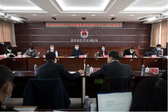 董贵蛟对市司法局关心支持昌平区各企业复工复产工作和提供法律需求表示感谢,对昌平区司法行政系统和律师行业的工作成绩给予充分肯定,希望昌平区公共法律服务继续优化服务、发挥作用,全力保障企业复工复产。
