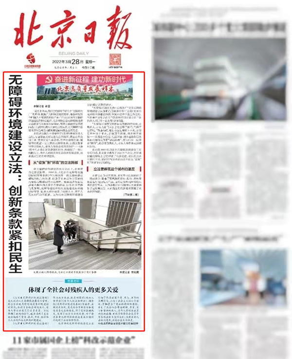 北京日报头版头条:无障碍环境建设立法 创新条款紧扣民生