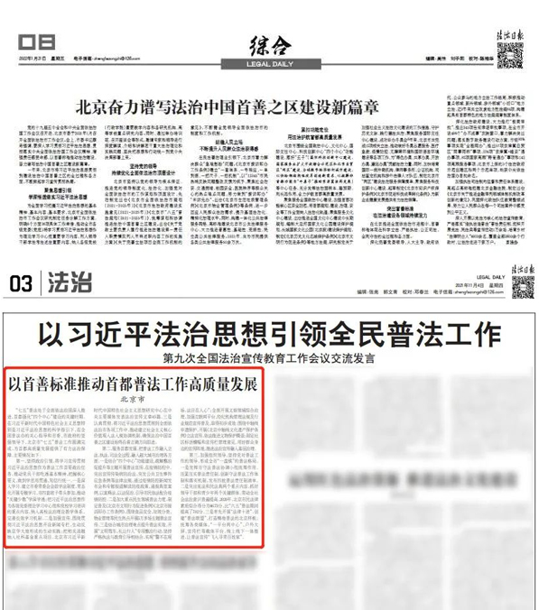把学习贯彻习近平法治思想作为重中之重,先后印发《北京市贯彻落实<习近平总书记在中央全面依法治国工作会议上的重要讲话>精神任务分工方案》《关于认真学习〈习近平法治思想学习纲要〉的通知》等,把习近平法治思想贯彻到建设法治中国首善之区的全过程和各方面。开展法治政府建设全面督察和党政主要负责人履行推进法治建设第一责任人职责等专项督察,确保各项任务落实;聚焦疫情防控,统筹协调疫情防控法治保障工作;建立优化营商环境法治保障联席会议制度,服务法治化营商环境建设;发挥参谋助手作用,采用多种形式开展综合性、小切口调查研究,形成相关调研报告及意见建议,助力科学依法决策;构建法治人才联合培养机制,逐步形成具有北京特色的法治人才联合培养新路径。北京市连续三次在中央全面依法治国相关工作会议和习近平法治思想座谈会上作典型发言。