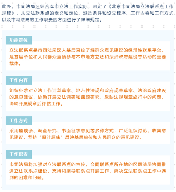 市司法局制定的《北京市司法局立法联系点工作规程》内容