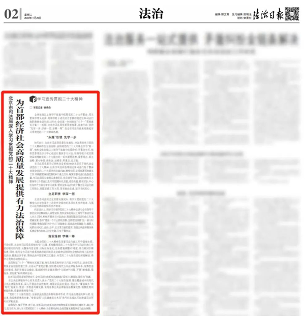 法治日报:北京市司法局深入学习贯彻党的二十大精神 为首都经济社会高质量发展提供有力法治保障
