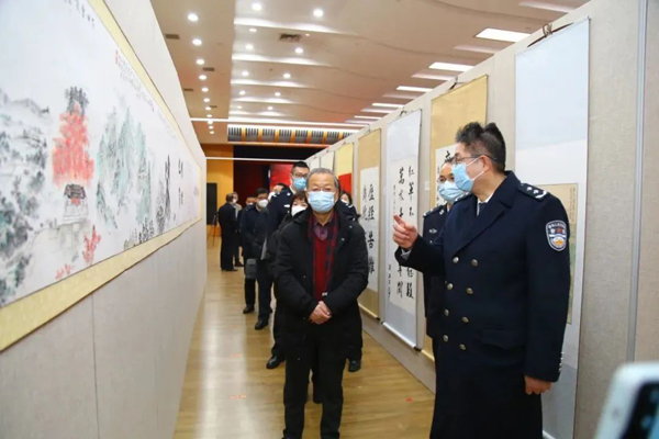 展厅四周悬挂的一面面锦旗,讲述着民警教育转化罪犯的感人故事;从全局罪犯创作的2800余幅作品中精选而来的十余幅书画作品,描绘了罪犯心中的爱国热情。