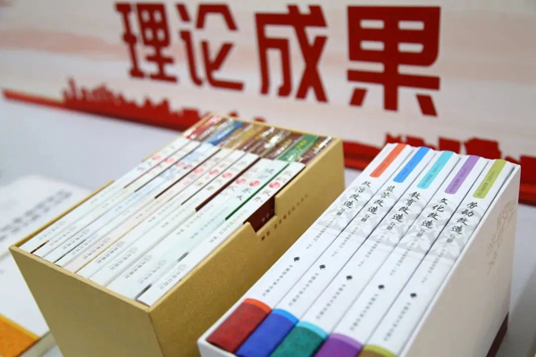 展厅中央摆放的一本本书籍、画册,收录了包括上级领导关怀指导、全局上下理论探索、制度创新、实践运用等四个主要方面的相关成果。