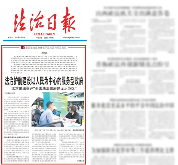 在中央全面依法治国委员会办公室近期公布的第二批全国法治政府建设示范地区中,东城区榜上有名。
