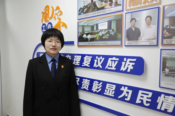 她二十年坚守法治建设一线,投身行政复议岗位,力争每个案件的办理公正合法,经得起法律和群众的检验。她忠诚履职,依法办案,累计审理行政复议案件2000余件,纠正了一批违法和不当的行政行为,维护了群众合法权益。她复议为民,善于调解,积极开展行政复议全过程调解,近三年复议调解率达到近40%,大批行政争议得以案结事了。她锐意进取,推动改革,创新提出构建“1+1+43”行政复议接待咨询工作格局,努力探索出统一科学、规范畅通、便民为民、高效化解的行政复议体制改革的朝阳模式。