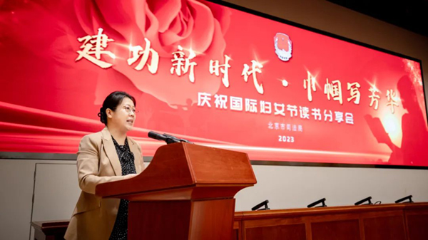 3月8日上午,北京市司法局举办“建功新时代•巾帼写芳华”读书分享主题活动。市纪委市监委驻市委政法委纪检监察组组长吴久宏,市妇联党组成员、副主席陈延平,市总工会女职工部部长、二级巡视员张秀萍出席活动。市司法局党委书记、局长崔杨致辞。
