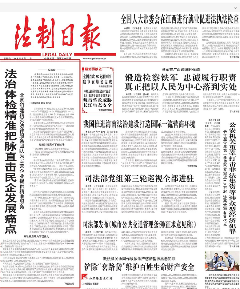 近日,《法制日报》以《法治体检精准把脉直击民企发展痛点 北京组建精英法律服务团队为民营企业提供精准服务》为题深度报道北京市开展“法治体检”为民营企业保驾护航的典型做法。今天,为你详解这份贴心的体检单~~