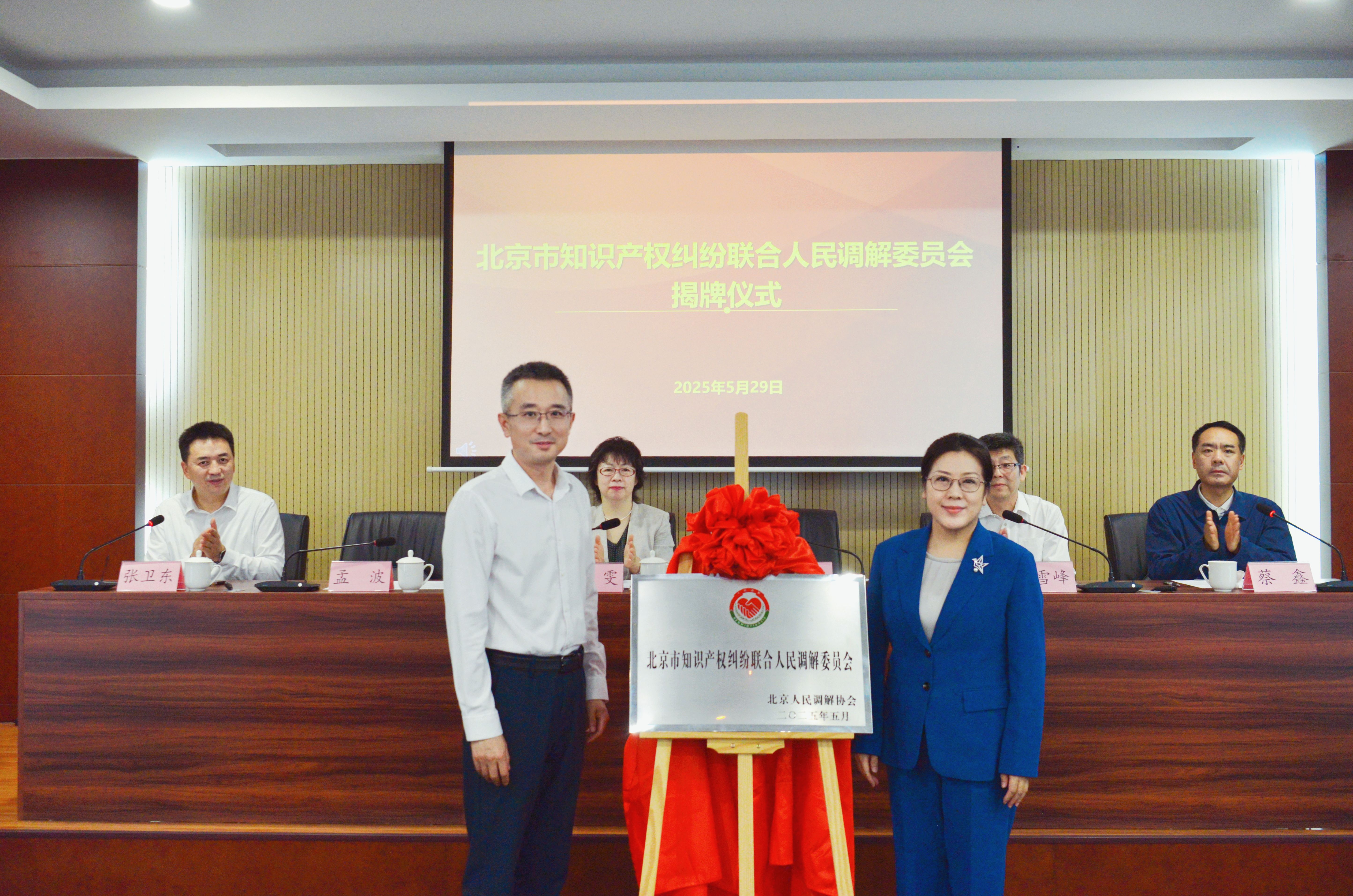 5月29日,北京市知识产权纠纷联合人民调解委员会(以下简称知产联调委)成立仪式在北京市知识产权保护中心(以下简称北京保护中心)举行。国家知识产权局知识产权保护司司长郭雯,北京市司法局党委书记、局长崔杨,北京市知识产权局党组书记、局长孟波,北京市高级人民法院副院长任雪峰,北京市司法局党委委员、副局长张卫东,北京市知识产权局党组成员、副局长蔡鑫,北京知识产权法院审判委员会专职委员赵瑞罡出席活动。全市20家行业性、专业性知识产权纠纷人民调解委员会代表参加活动。