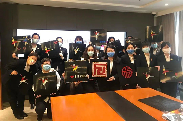 在她们的纤纤素手下,千姿百态的芭蕾舞女孩、古香古色的福字、方圆公证处LOGO让人眼前一亮。她们灿烂的笑容,表达着对生活的热爱,认真的样子与工作时如出一辙。