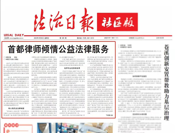 北京市司法局律师管理处处长崔冰向《法治日报》记者介绍,多年来,首都律师行业牢固树立以人民为中心的发展理念,积极履行社会责任,通过开展法律援助工作、参与矛盾纠纷化解、服务优化营商环境、为法治建设建言献策等多种方式的公益法律服务,在推动首都法治中国“首善之区”建设中发挥着越来越重要的作用。
