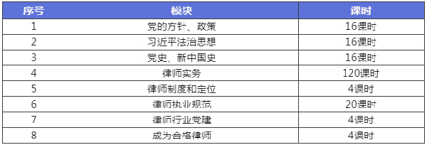 培训课程根据全国律协《申请律师执业人员实习管理规则》要求进行设置,包括:习近平新时代中国特色社会主义思想;党的路线、方针、政策;中国共产党党史、新中国史、改革开放史和社会主义发展史;律师制度和律师的定位及其职责使命;律师执业管理规定;律师职业道德和执业纪律;律师实务知识和执业技能等内容,律师协会将根据形势任务变化和要求及时补充、更新课程内容。