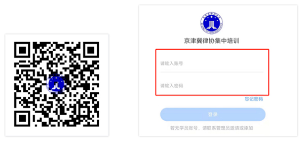 1.登录以下网址或扫描二维码,进入京津冀律协集中培训学习平台,在固定区域输入用户名和密码。