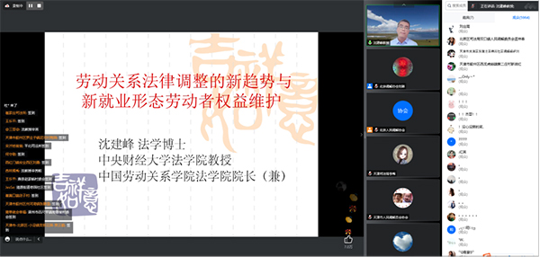 6月13日下午,中央财经大学教授沈建峰受邀通过腾讯会议围绕劳动关系法律调整的新趋势与新就业形态劳动者权益维护为京津冀三地调解工作者在线开讲。