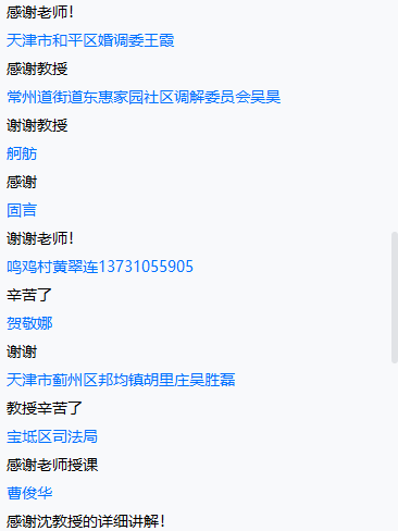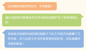 两个半小时的课程,沈教授从全国疫情防控常态化的大背景入手,结合《民法典》《劳动法》《劳动合同法》等相关法律,讲到了现阶段疫情下及疫情后可能带来的劳动用工、劳动力再就业、新就业形态劳动者等问题,为京津冀三地调解工作者开展了一堂生动的培训课,为调解组织、调解员在复工复产关键时期妥善开展劳动争议纠纷化解工作提供了及时、有效的指导和支持。