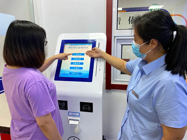 接待大厅工作人员指引申请人取号