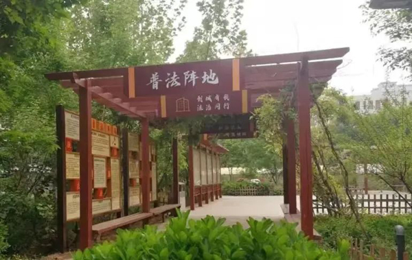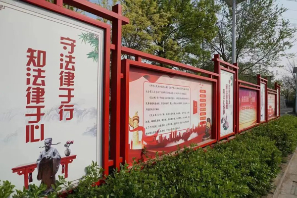 走进军留庄村,3000多平方米的法治文化广场成为小区的一大亮点,红蓝两色法治宣传雕塑占据中央,定期更换内容的宣传栏围绕在四周。伊林郡社区精心布置的“书香小屋”内,法治图书角占据一席,社区的村居法律顾问每个月都会在这里接待群众咨询。