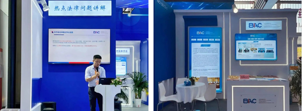 服贸会期间,竞天公诚律师事务所的合伙人和各部门职员与前来参展的观众进行现场交流、开展热点法律问题的演讲,分享法律观点。