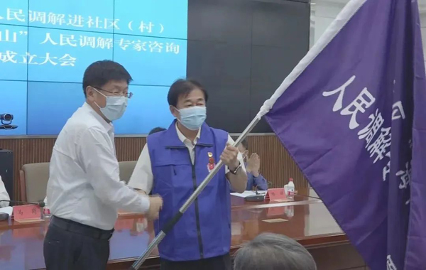 成立仪式现场为老干部“海陀山”人民调解专家咨询志愿服务队授旗