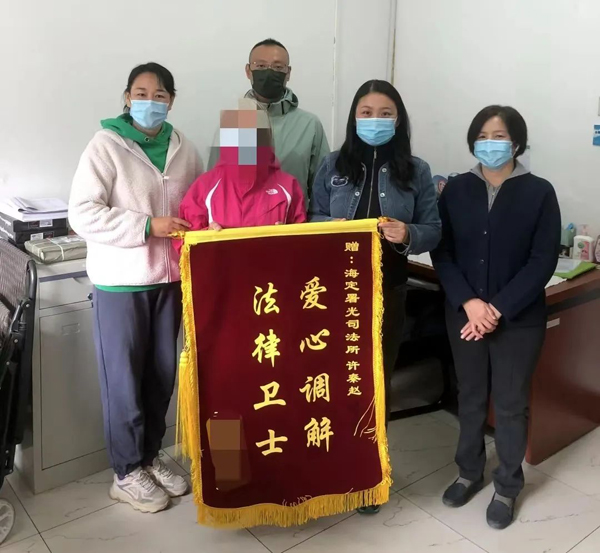 司法所工作人员成功调解案件,当事人送来锦旗