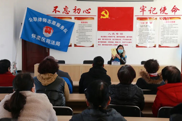 怀柔区公职律师志愿服务队志愿者向群众讲解《法律援助法》