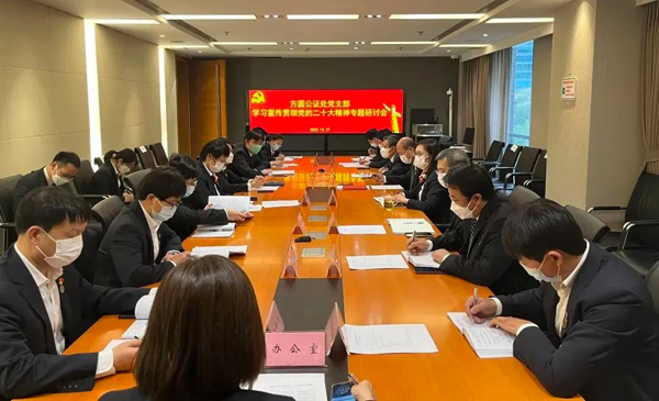 北京市方圆公证处党支部召开学习宣传贯彻党的二十大精神专题研讨会。