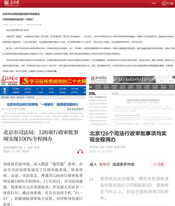法治网、民主与法制网、北京日报、北京新闻、新京报等媒体纷纷为北京市司法局行政审批系统点赞!