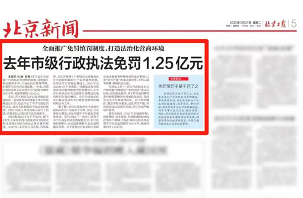 北京日报:去年北京市级行政执法免罚1.25亿元