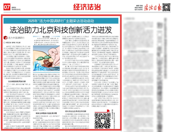 《法治日报》记者在调研中发现,法治保障已成为解码这片创新沃土活力发展的核心密码之一。有着三千余年建城史的北京,正以法治为帆、创新为桨,在政策服务的精准供给里、在司法建议的推动完善中、在地方立法的法治保障下,焕发着科技创新的澎湃动力。