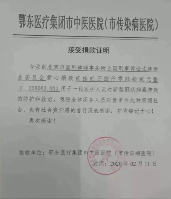 2020年2月,湖北疫情牵动全国人民的心。赵春雨律师以身作则、率先垂范,带领盈科全国刑事法律专业委员会组织 “情系湖北,共克时艰”线上募捐慈善晚会,以歌声抚慰创伤、传递温暖、鼓舞人心,致敬奋战在一线的白衣天使,为疫区同胞送上深切的祝福。募捐慈善晚会进行期间,盈科刑辩同仁纷纷献出爱心,募集善款累计228062元,用于湖北省黄石市传染病医院一线医护人员对新型冠状病毒感染的防护和救治,展现出刑辩律师的情怀、温度与担当。2020年至2022年期间,赵春雨律师组织党支部和部门成员,积极参与北京市青年联合会组织的环球影城防疫志愿活动、北京市盈科律师事务所组织的社区防疫志愿者活动,始终坚持发挥模范带头作用。