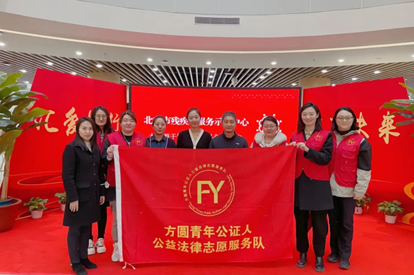 朱青所在的接待岗,有一个特殊的名字——团员示范岗,在日常工作中,他们佩戴团徽,亮明身份,用实际行动为首都公证服务贡献青春力量。此外,青年公证人公益法律志愿服务队走进北京市残疾人服务示范中心“汇爱大厦”,学习全心全意为残疾人服务的工作理念,围绕如何更好为残障群体提供优质法律服务,与示范中心工作人员展开深入交流。同时就与群众生活息息相关的遗嘱、继承、监护等公证服务项目和相关法律规定,青年公证员一一进行讲解,为进一步提升首都残疾人服务保障水平贡献力量。